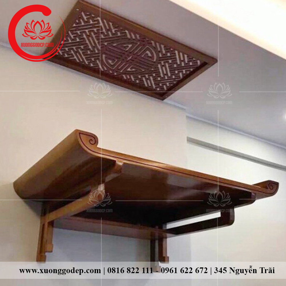 Bởi thiết kế đơn giản nên bàn thờ treo tường này được sử dụng nhiều, đặc biệt là cho không gian nhà chung cư, nhà phố hoặc dùng cho bàn thờ Phật hoặc bàn thờ gia tiên.